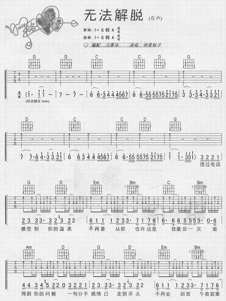 >> 无法解脱-帅爱蚊子(吉他谱)