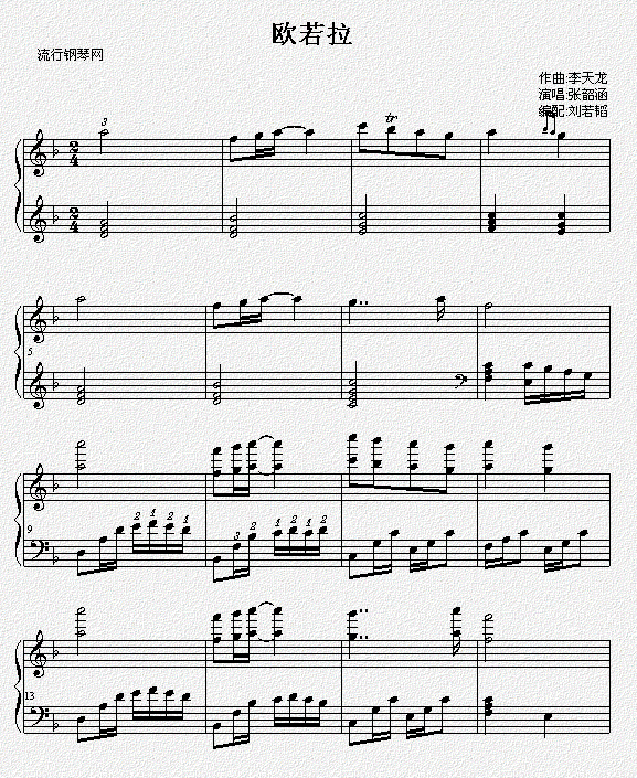 >> 欧若拉-张韶涵(钢琴线谱)