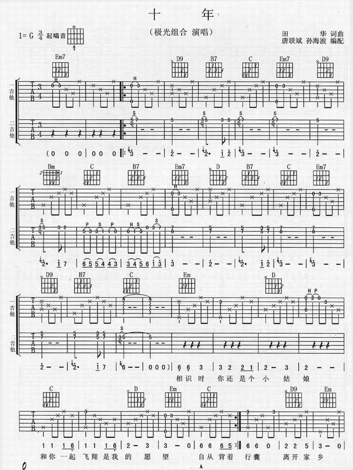 十年-极光组合(吉他谱)