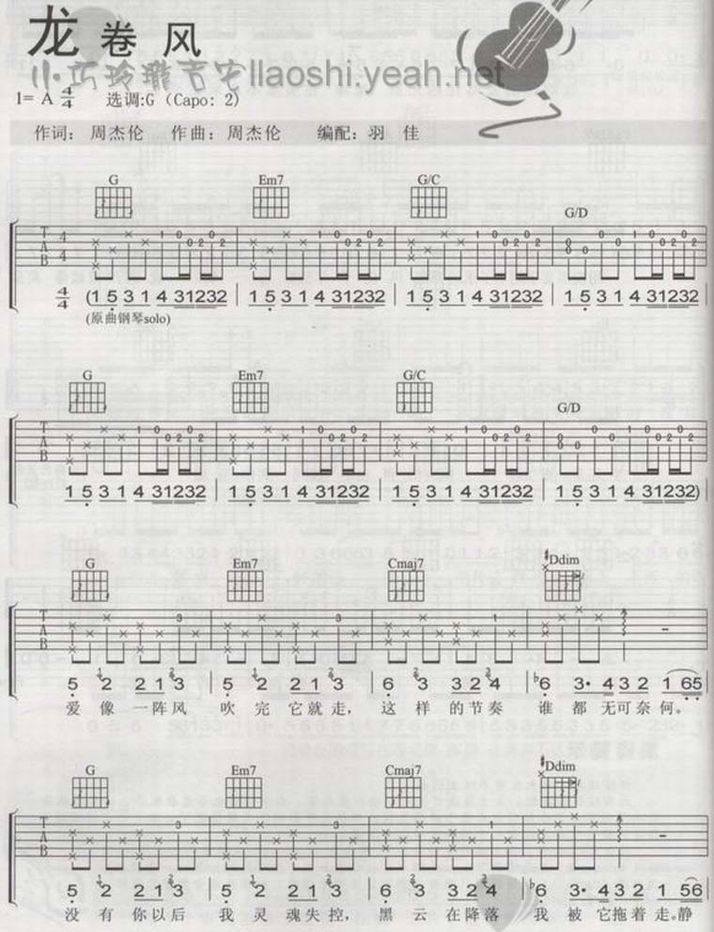 >> 龙卷风-周杰伦(吉他谱)