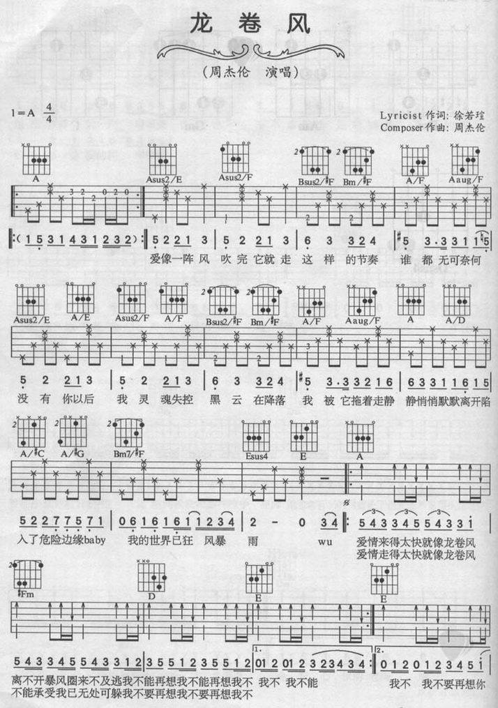 >> 龙卷风-周杰伦(吉他谱版本2)