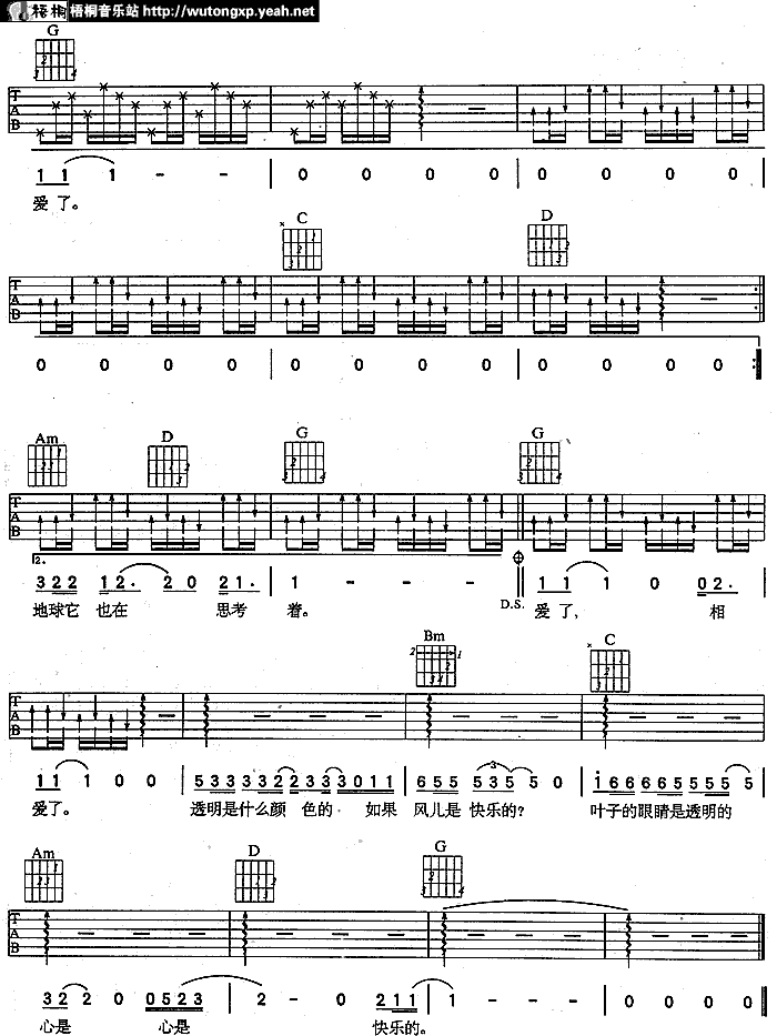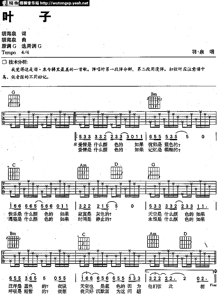 叶子-羽泉(吉他谱 吉他曲谱 吉他六线谱 吉他歌谱 吉它谱 影视吉他谱)
