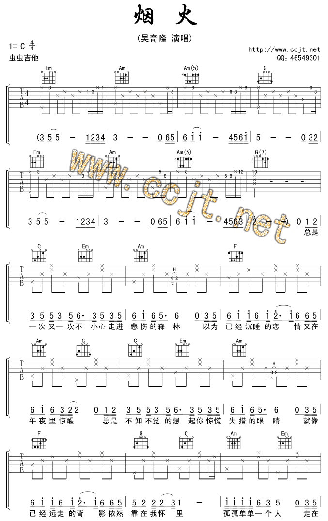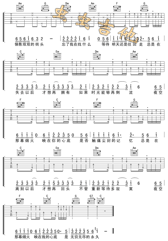 烟火-吴奇隆(吉他谱 吉他曲谱 吉他六线谱 吉他歌谱 吉它谱 影视吉他谱)
