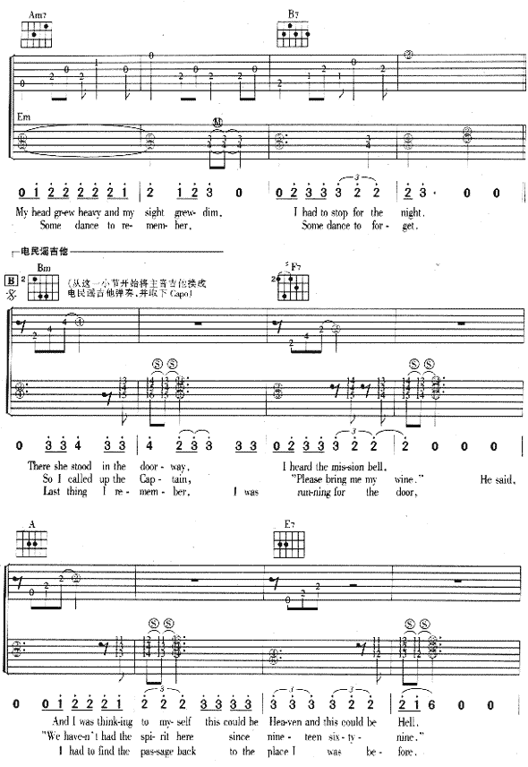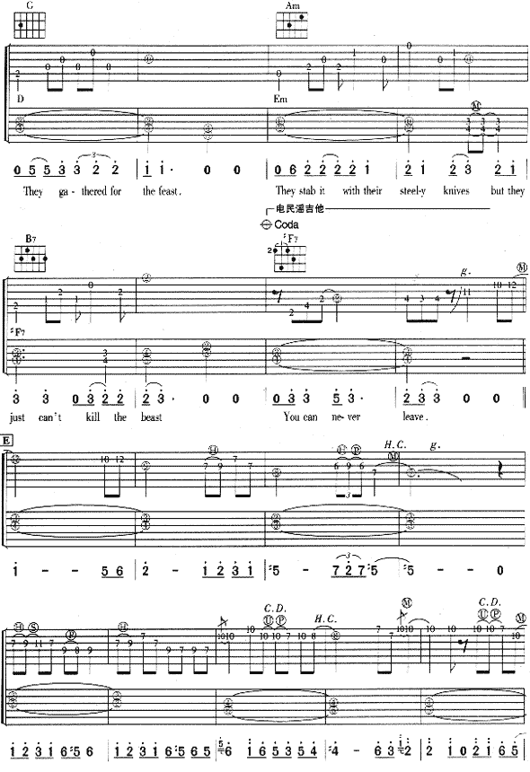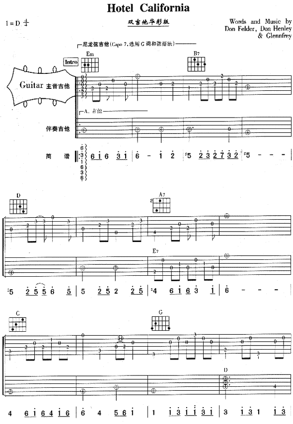 >> 加州旅馆-老鹰乐队(双吉他华彩版)