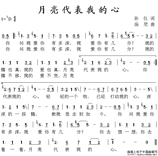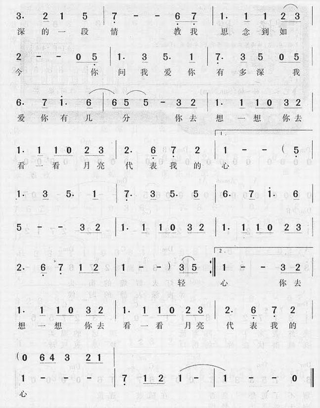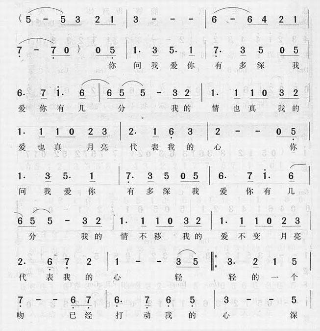 >> 月亮代表我的心-邓丽君(简谱)