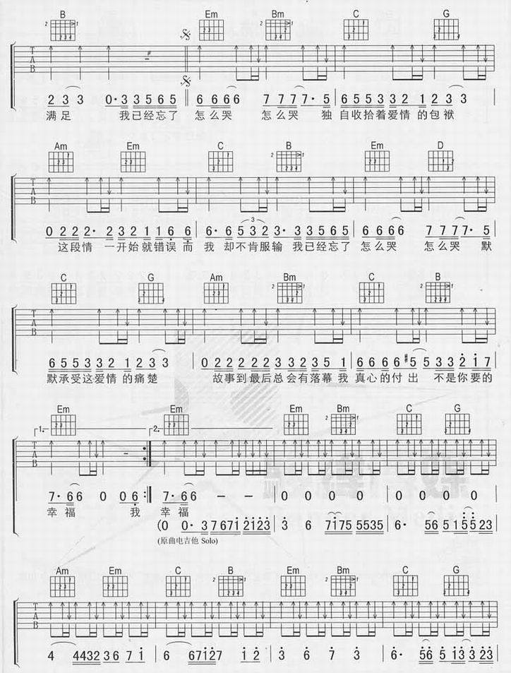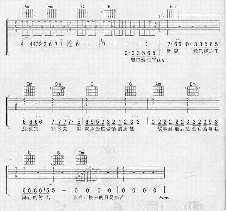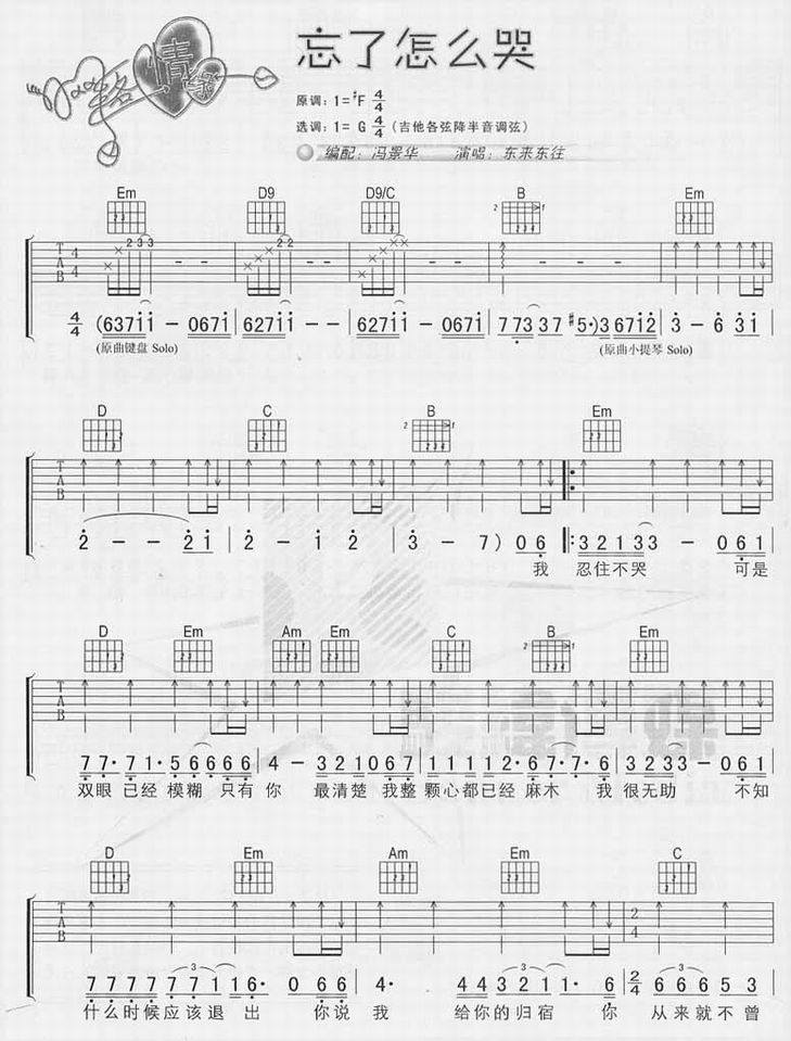 >> 忘了怎么哭-东来东往(吉他谱)