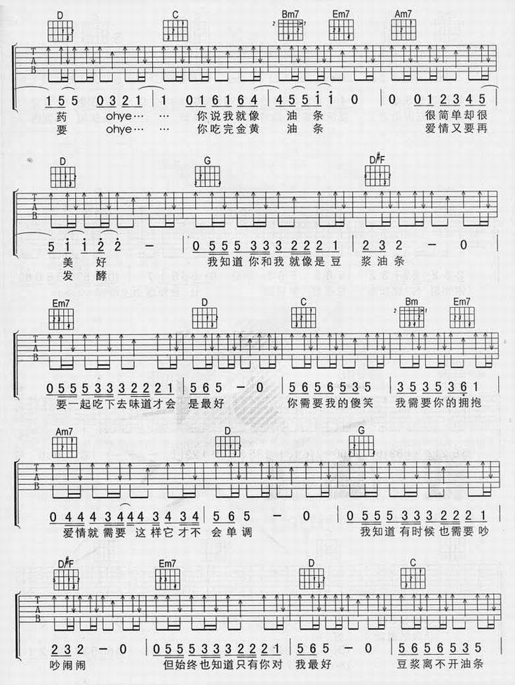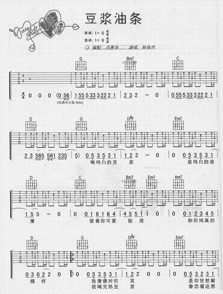 豆浆油条-林俊杰(吉他谱 吉他曲谱 吉他六线谱 吉他歌谱 吉它谱 影视吉他谱)