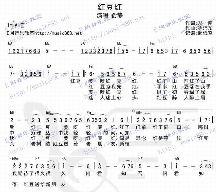 >> 红豆红-俞静(简谱)