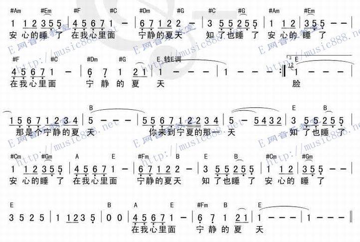 宁夏-梁静茹(简谱 歌谱 歌曲简谱 合唱简谱 民歌简谱 影视简谱)