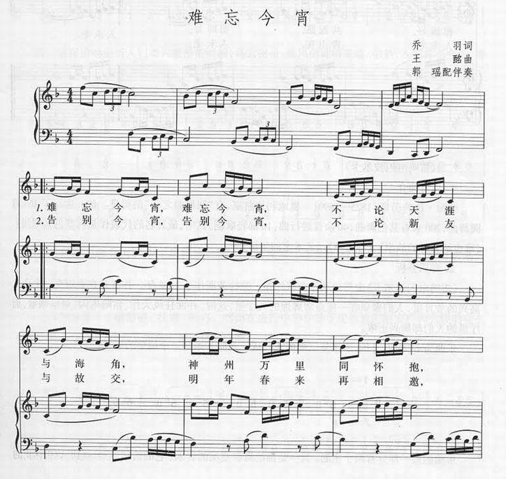 >> 难忘今宵-钢琴伴奏(线谱)