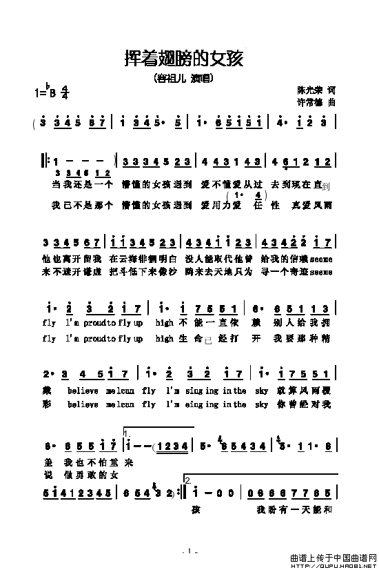 >> 挥着翅膀的女孩-容祖儿(简谱)