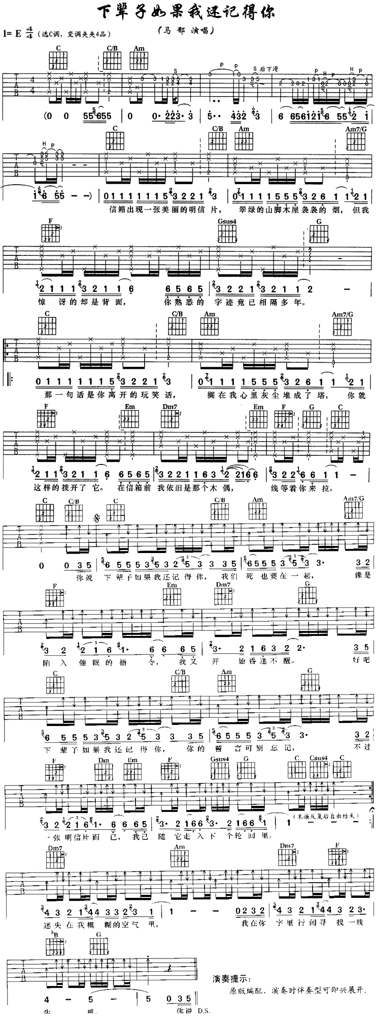 >> 下辈子如果我还记得你-马郁(吉他谱)