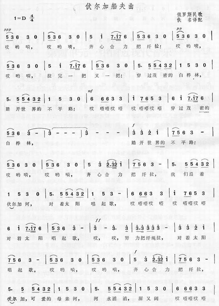 >> 伏尔加船夫曲-俄罗斯民歌(简谱)
