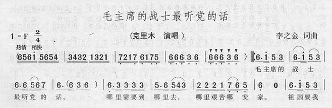 >> 毛主席的战士最听党的话-克里木(简谱)