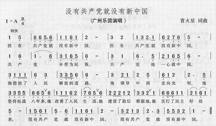 >> 没有共产党就没有新中国(简谱)