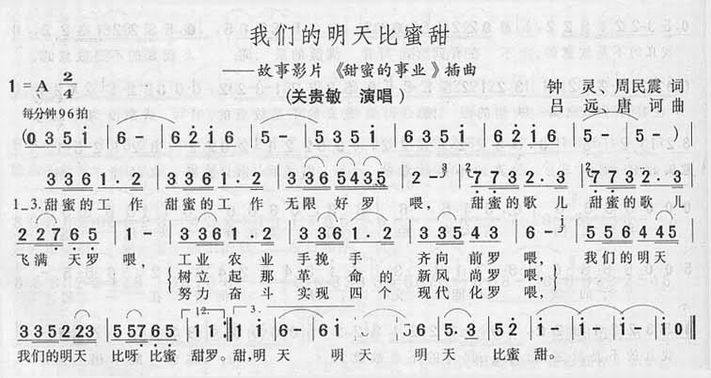 >> 我们的明天比蜜甜-关贵敏(简谱)