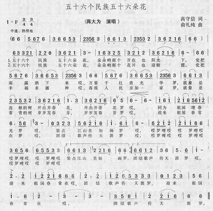 >> 五十六个民族五十六朵花-将大为(简谱)