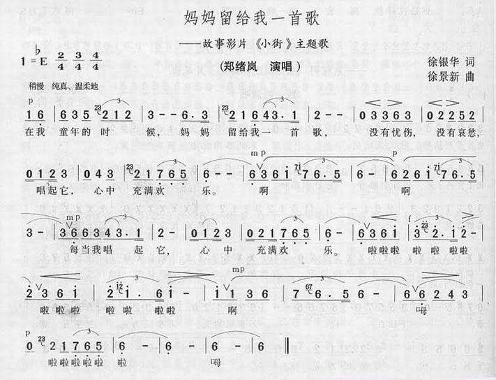 妈妈留给我一首歌-郑绪岚(简谱)