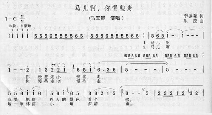 >> 马儿啊,你慢些走-马玉涛(简谱)