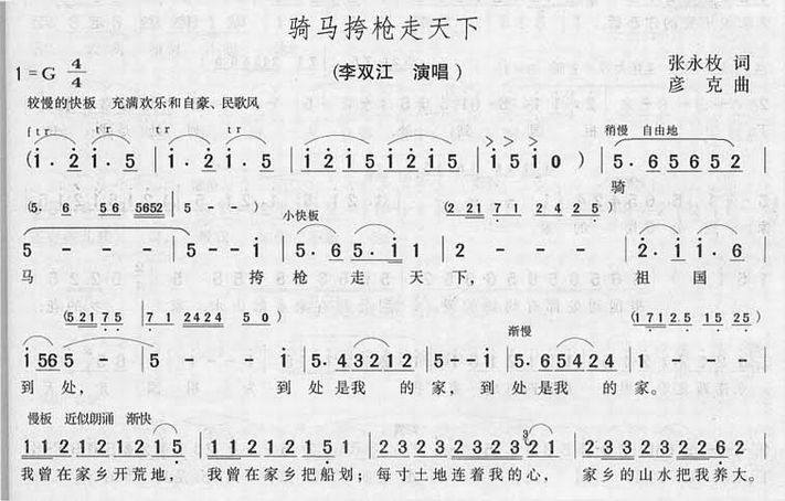 >> 骑马挎枪走天下-李双江(简谱)