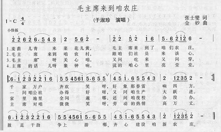 >> 毛主席来到咱农庄-于淑珍(简谱)