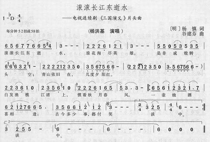 >> 滚滚长江东逝水-杨洪基(影视简谱)