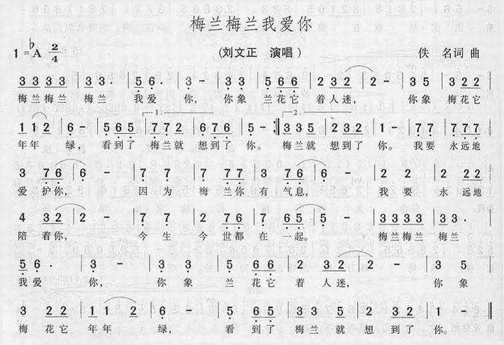 >> 梅兰梅兰我爱你-刘文正(简谱)