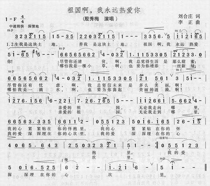 >> 祖国啊,我永远热爱你-殷秀梅(简谱)