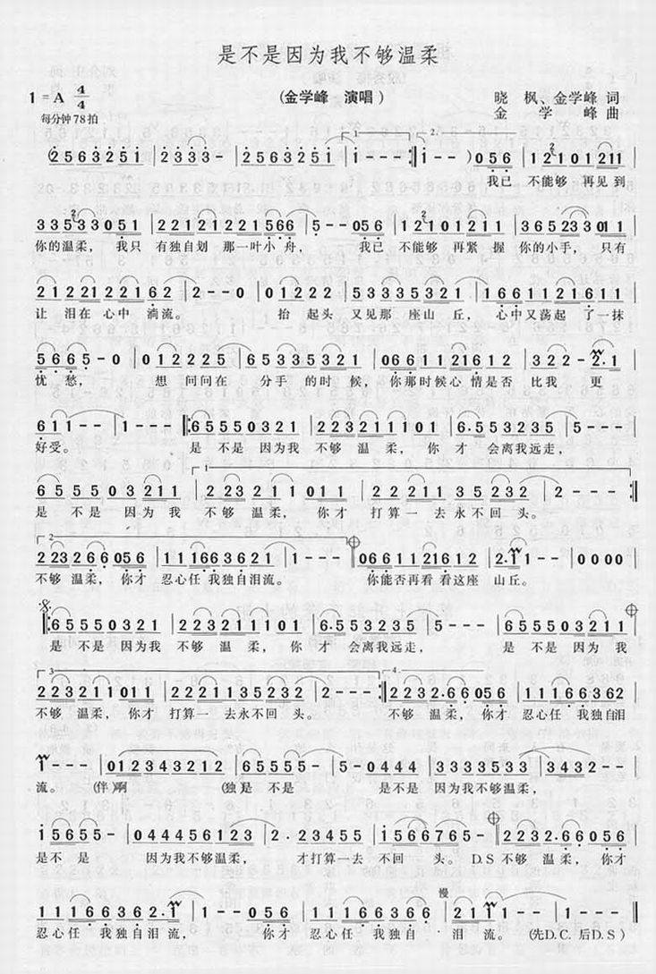 >> 是不是因为我不够温柔-金学峰(简谱)