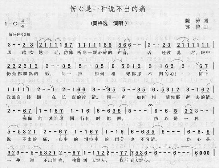 >> 伤心是一种说不出的痛-黄格选(简谱)