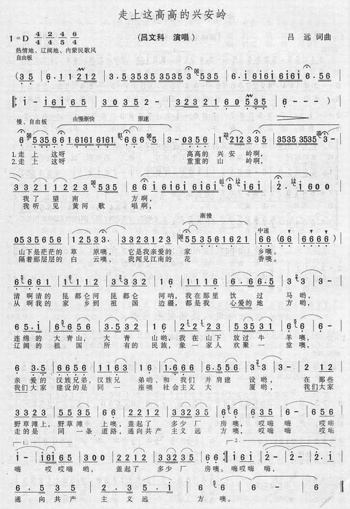>> 走上这高高的兴安岭-吕文科(简谱)