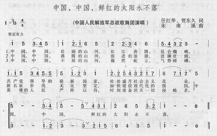 >> 中国,中国,鲜红的太阳永不落-合唱简谱