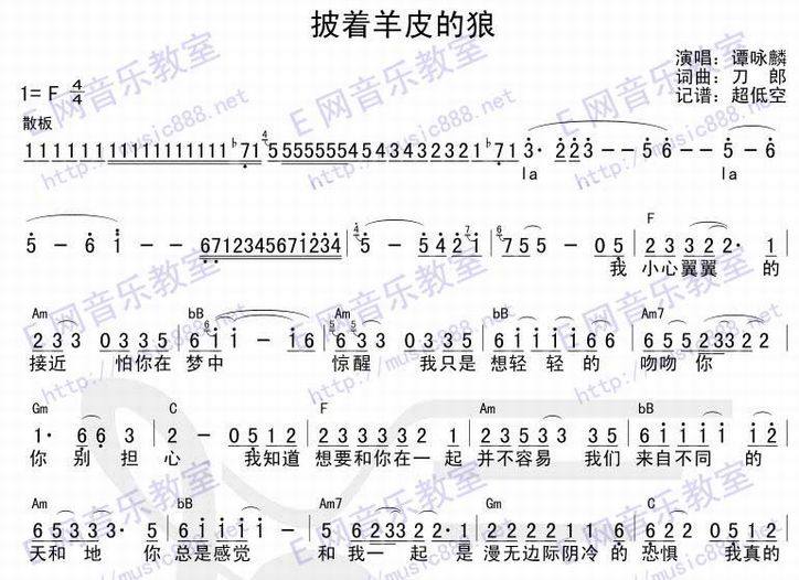 >> 披着羊皮的狼-谭咏麟(简谱)