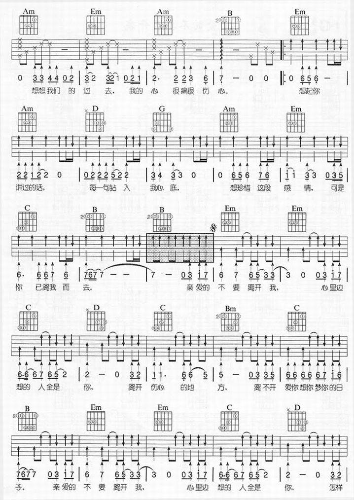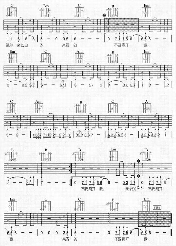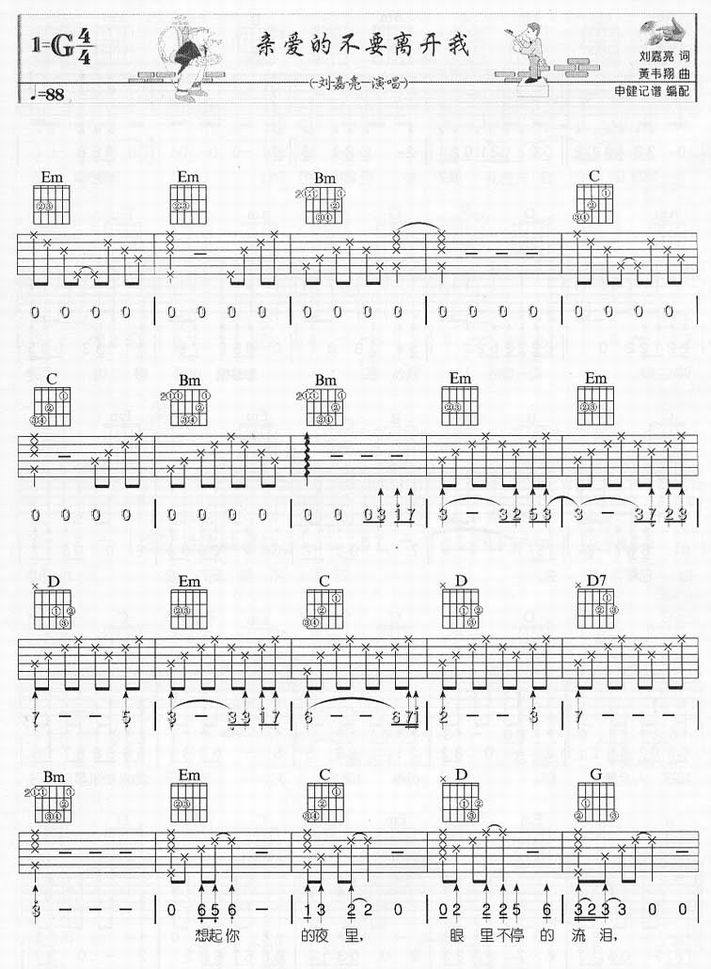 >> 亲爱的不要离开我-亮亮(吉他谱)