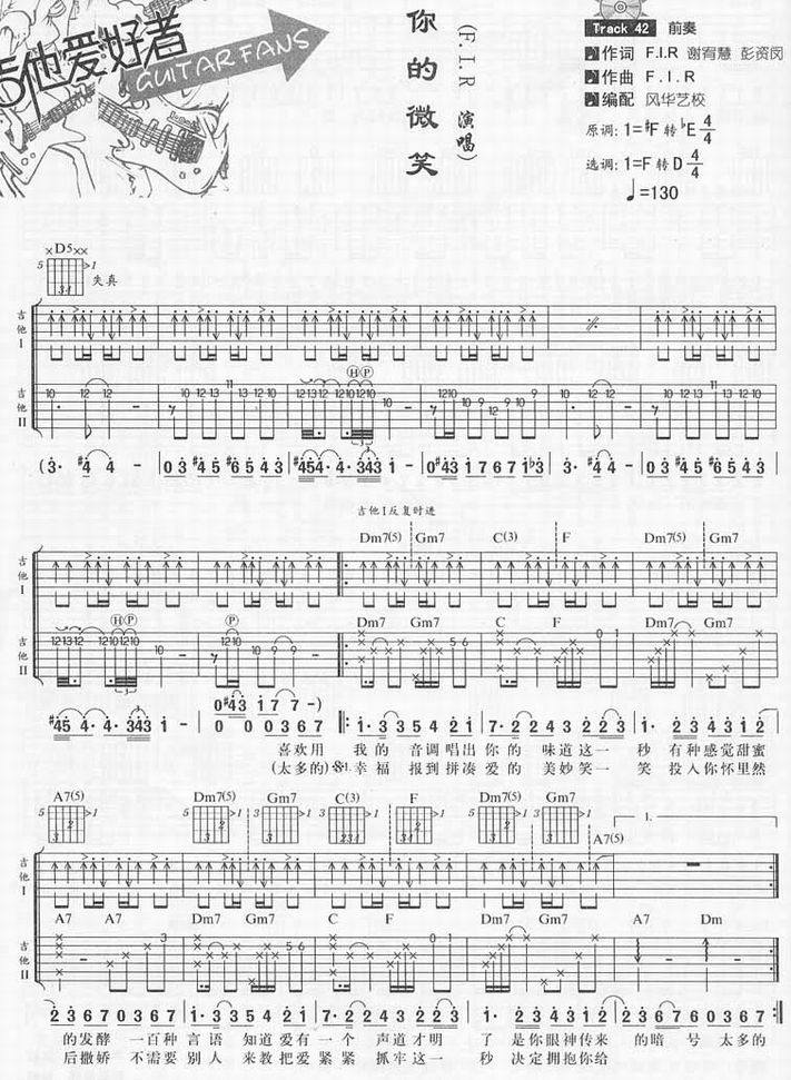 >> 你的微笑-F.I.R飞儿乐团(吉他谱)