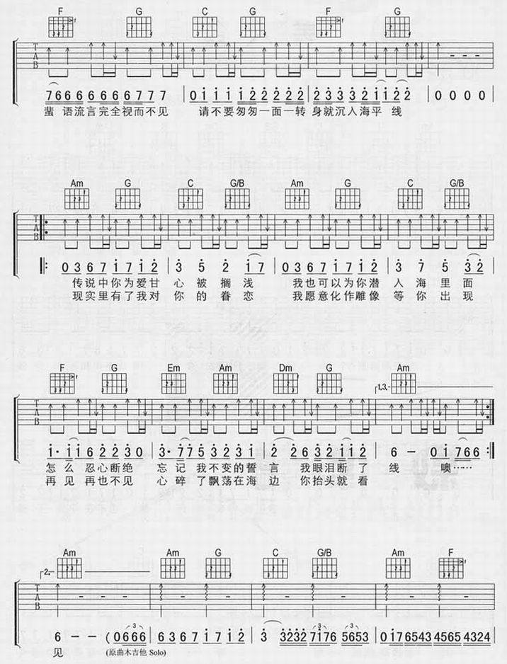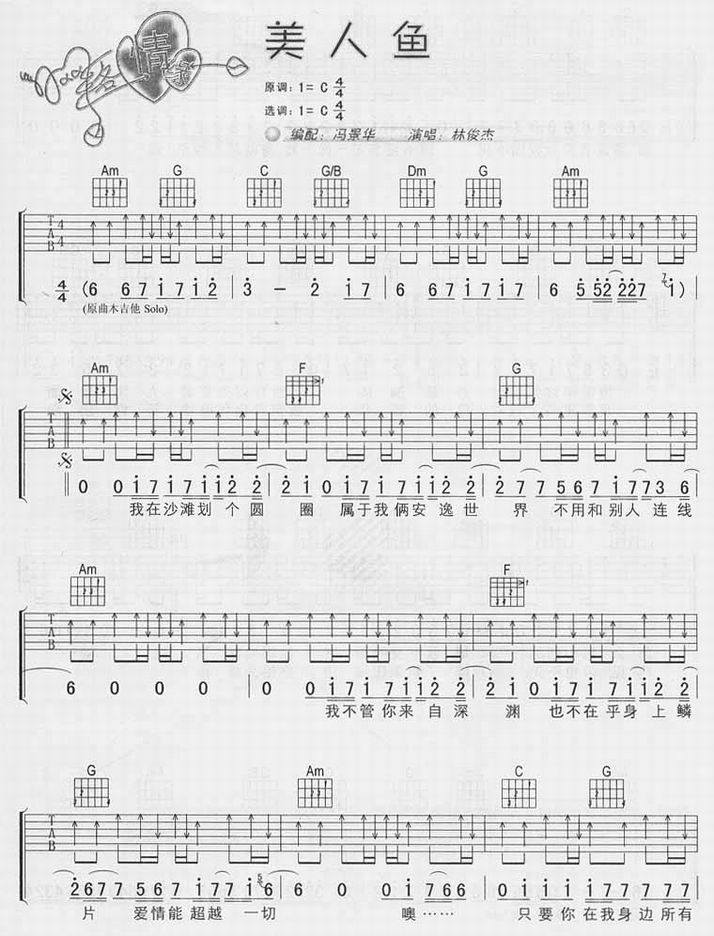 美人鱼-林俊杰(吉他谱 吉他曲谱 吉他六线谱 吉他歌谱 吉它谱 影视吉他谱)