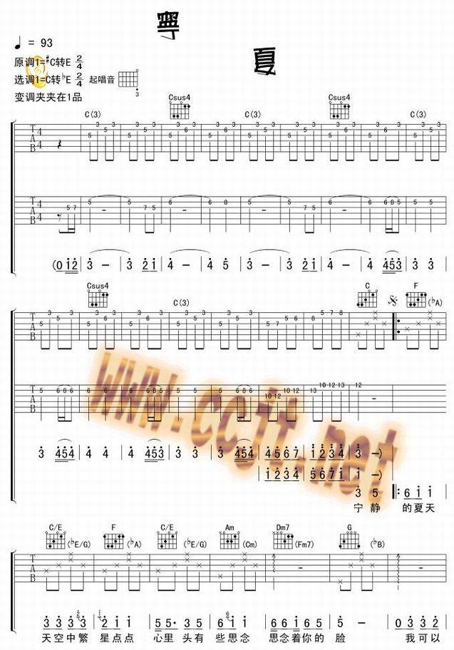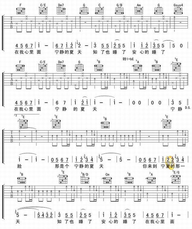 宁夏-梁静茹(吉他谱 吉他曲谱 吉他六线谱 吉他歌谱 吉它谱 影视吉他谱)