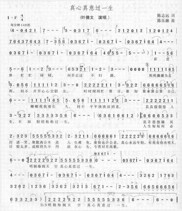 >> 真心真意过一生-叶倩文(简谱)