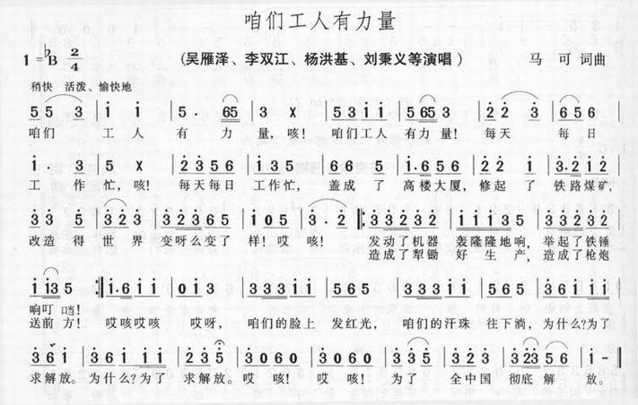 >> 咱们工人有力量-合唱(简谱)