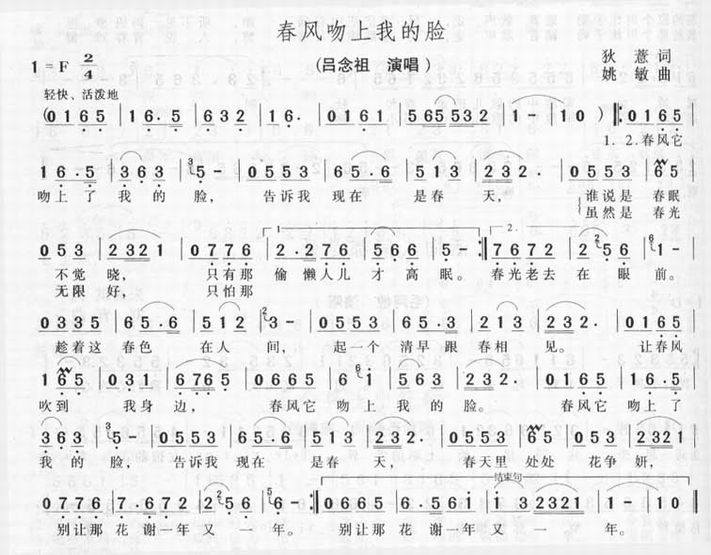 >> 春风吻上我的脸-吕念祖(简谱)