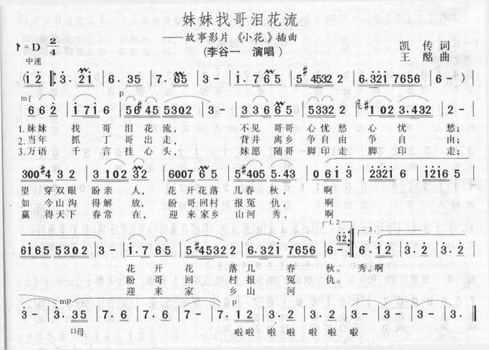 >> 妹妹找哥泪花流-李谷一(简谱)