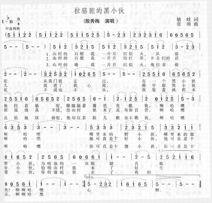 >> 拉骆驼的黑小伙-殷秀梅(简谱)