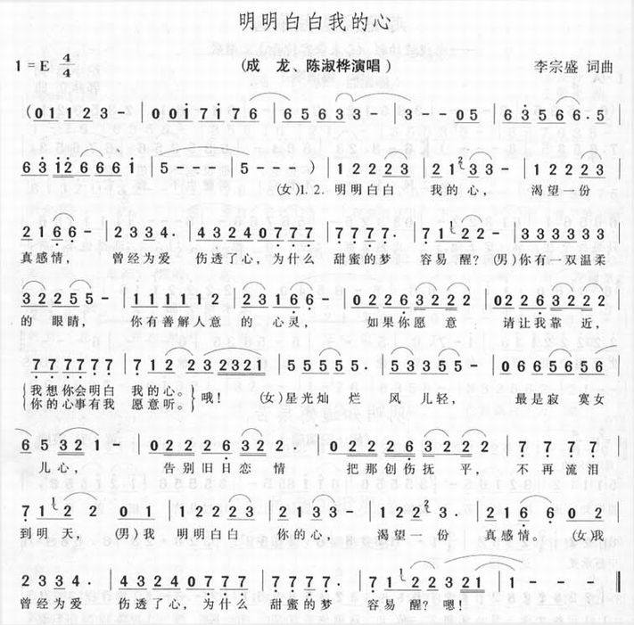 >> 明明白白我的心-成龙、陈淑桦(简谱)