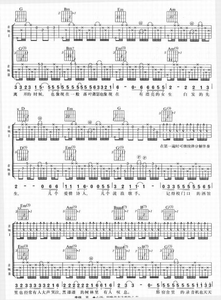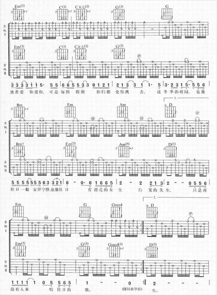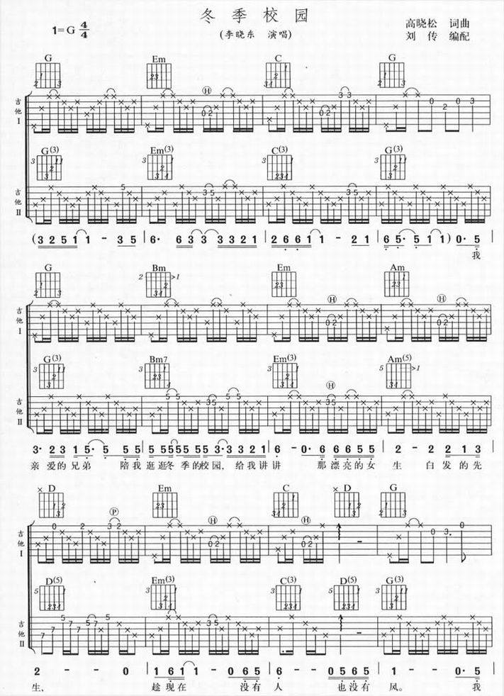 >> 冬季校园-李晓东(吉他谱)