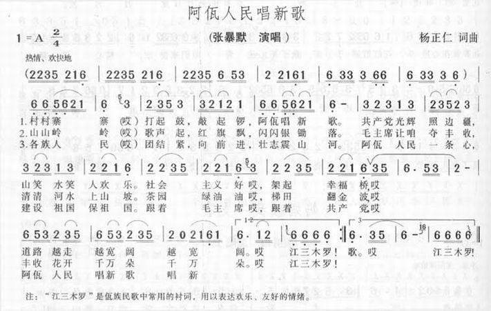 >> 阿佤人民唱新歌-张暴默(简谱)