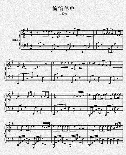 简简单单-林俊杰(钢琴谱 钢琴五线谱 流行钢琴谱 钢琴伴奏谱 钢琴弹唱谱 钢琴谱下载)