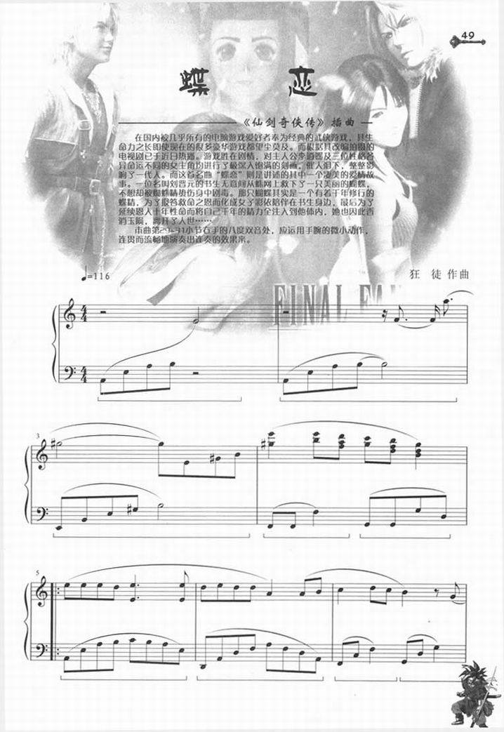 蝶恋-仙剑奇侠传插曲(钢琴谱 钢琴五线谱 流行钢琴谱 钢琴伴奏谱 钢琴弹唱谱 钢琴谱下载)