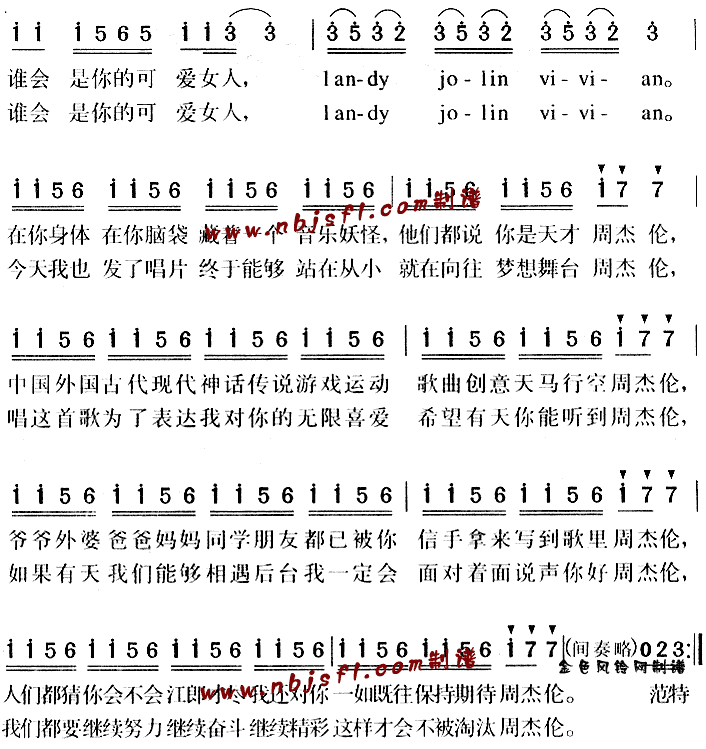 >> 你好周杰伦-安又琪(简谱)