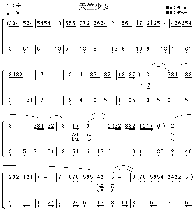 >> 天竺少女-李玲玉(西游记简谱)