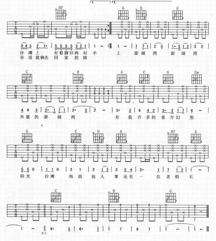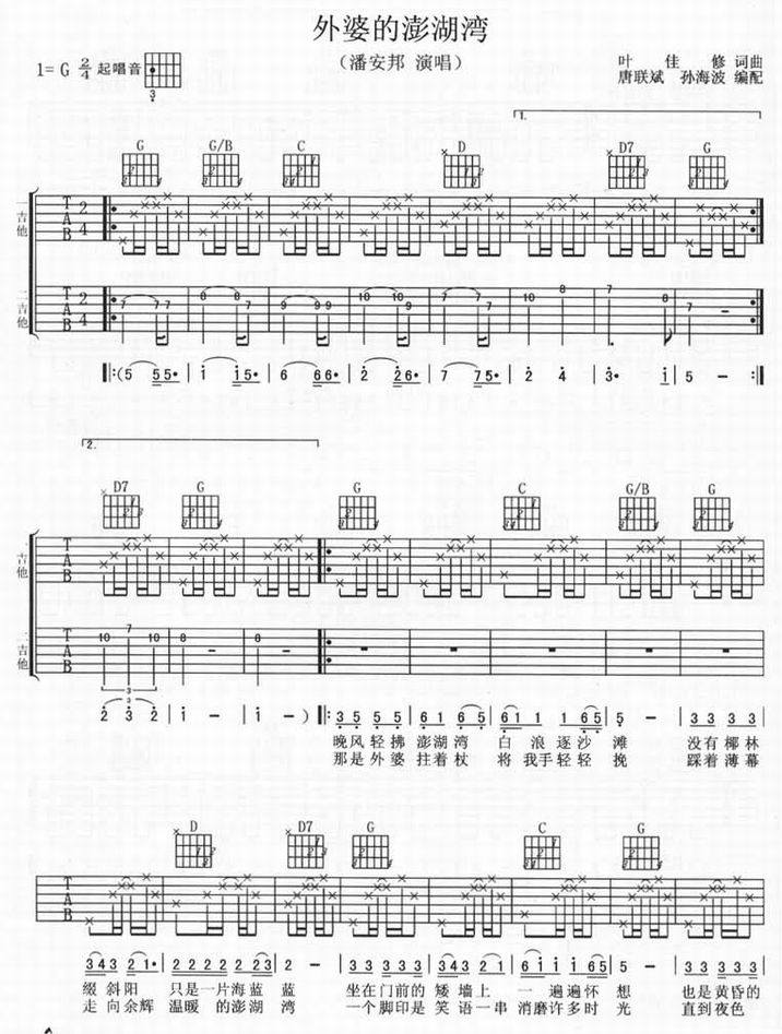 外婆的澎湖湾-潘安邦(吉他谱)
